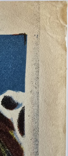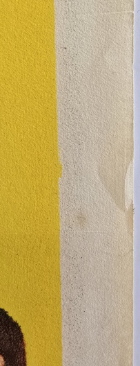 Once dry, the fold lines and minor imperfections can be worked on using watercolour pencils/paints (again, totally reversible). Once complete the linen backed poster is then cut from the stretch frame and trimmed to leave about an inch of clearance around the edge of the poster. If required, your framer will trim this down again (without touching the poster itself) prior to framing.