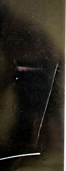 This rare double-sided folded piece (the rear face carries a press release), is in nice condition. With the main points of note being the usual scattered handling creases and light marks, fold line print wear/loss and to there is a 3″ crease line (with print wear) and fingerprint with white spec to the upper right area (see close-up shot).