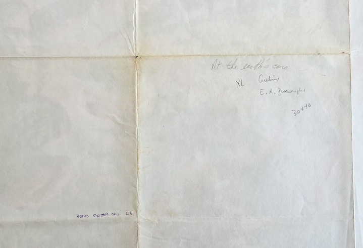 Once dry, the fold lines and minor imperfections can be worked on using watercolour pencils/paints (again, totally reversible). Once complete the linen backed poster is then cut from the stretch frame and trimmed to leave about an inch of clearance around the edge of the poster. If required, your framer will trim this down again (without touching the poster itself) prior to framing.