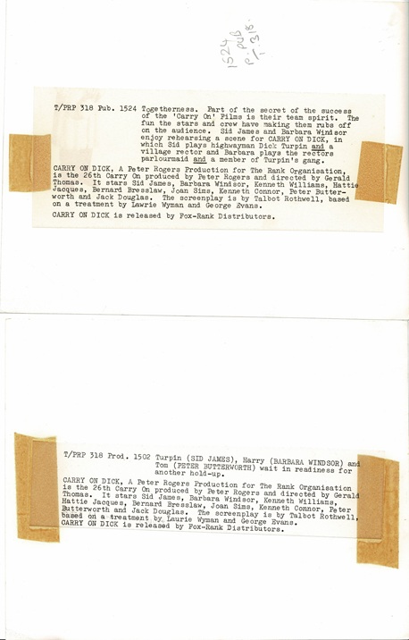 These two B&W Still’s are in wonderful condition. With the only points of note being the usual scattered light marks/scuffs (the worst ones to the right of Barbara in the black area) and the distributor has added the film details etc. to the rear of each, of which the old tape has turned brown.