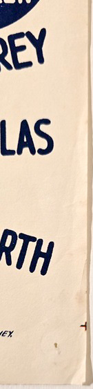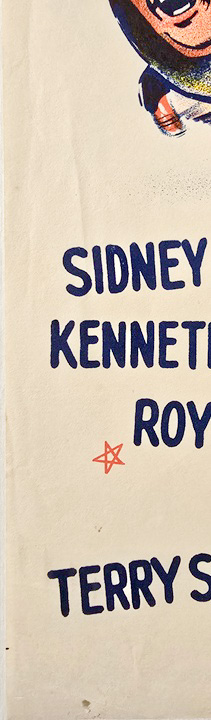 Condition wise, the only points of note with this ‘theatre used’ daybill are single thumbtack holes to each of the corners, scattered creasing to the left side and along/around the fold lines (worst to the upper one), corner/edge creasing and a couple of light minor marks to the left of Kenneth’s cheek.