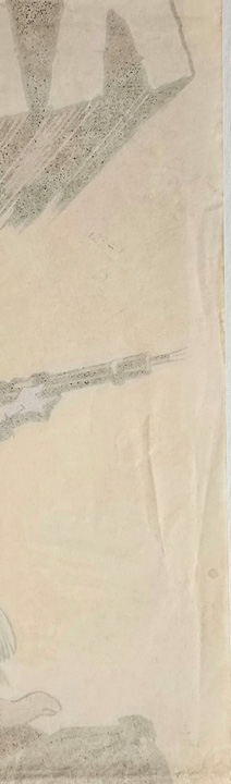 Once dry, the fold lines and minor imperfections can be worked on using watercolour pencils/paints (again, totally reversible). Once complete the linen backed poster is then cut from the stretch frame and trimmed to leave about an inch of clearance around the edge of the poster. If required, your framer will trim this down again (without touching the poster itself) prior to framing.