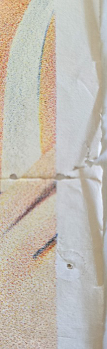 Once dry, the fold lines and minor imperfections can be worked on using watercolour pencils/paints (again, totally reversible). Once complete the linen backed poster is then cut from the stretch frame and trimmed to leave about an inch of clearance around the edge of the poster. If required, your framer will trim this down again (without touching the poster itself) prior to framing.