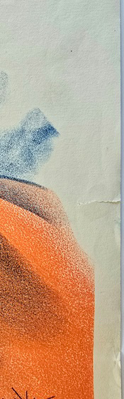 Once dry, the fold lines and minor imperfections can be worked on using watercolour pencils/paints (again, totally reversible). Once complete the linen backed poster is then cut from the stretch frame and trimmed to leave about an inch of clearance around the edge of the poster. If required, your framer will trim this down again (without touching the poster itself) prior to framing.