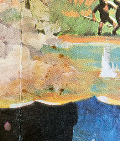 Once dry, the fold lines and minor imperfections can be worked on using watercolour pencils/paints (again, totally reversible). Once complete the linen backed poster is then cut from the stretch frame and trimmed to leave about an inch of clearance around the edge of the poster. If required, your framer will trim this down again (without touching the poster itself) prior to framing.