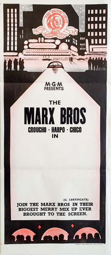 This very rare MGM Marx Bros ‘Stock’ daybill is unused and in fantastic condition, with only minor/light scattered creasing and a small 8mm edge tear to the border of any note. In all a great quirky piece to add to any Marx Brothers collection.