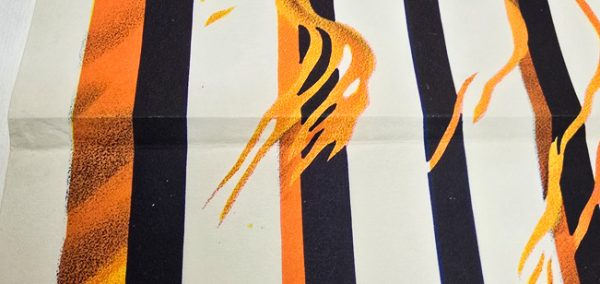Once dry, the fold lines and minor imperfections can be worked on using watercolour pencils/paints (again, totally reversible). Once complete the linen backed poster is then cut from the stretch frame and trimmed to leave about an inch of clearance around the edge of the poster. If required, your framer will trim this down again (without touching the poster itself) prior to framing.