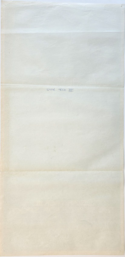 This daybill in ‘theatre used’ condition with the main points of note being: It has the usual two fold lines, fold line print wear/loss (common on all folded posters of this era), staple & pin holes to each corner (the upper left has split) and to the central sides, scattered handling creases (worse to the border area), the odd print scuff (mainly to the upper/lower black areas) and there is a diagonal crease/fold running just below the upper ‘Join the Search’ text box (much easier to see in our shot of the rear).
