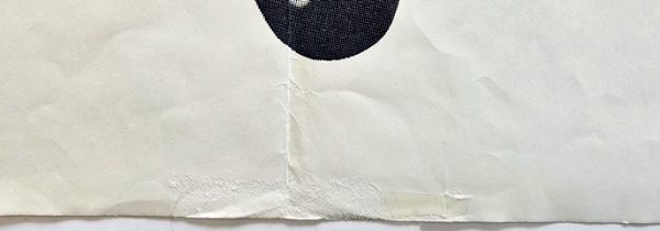 Once dry, the poster itself is then carefully mounted onto the Japanese paper using the same wheat based adhesive, which is soluble in water, and therefore fully reversible. Like the Japanese paper, as the poster dries it stretches slightly and in doing so it flattens out the fold lines on the poster, this stage usually takes another 3 – 4 days.
